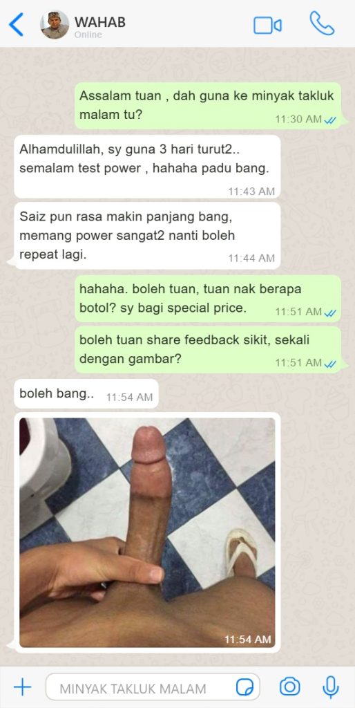 Jangan risau, hanya urut dari pangkal hingga kepala zakar. amalkan 10minit tiap hari.